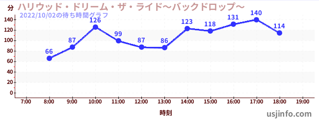 • ハリウッド・ドリーム・ザ・ライド〜バックドロップ〜$B$N(B2022年10月02日の待ち時間
