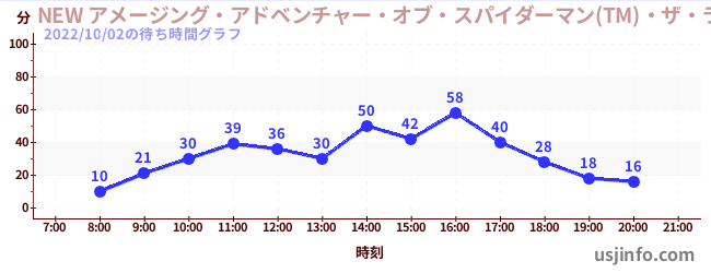 • NEW アメージング・アドベンチャー・オブ・スパイダーマン(TM)・ザ・ライド 4K3D$B$N(B2022年10月02日の待ち時間
