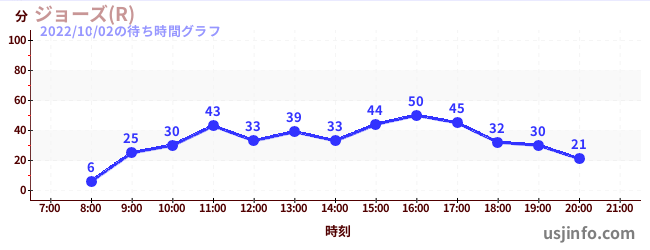 • ジョーズ(R)$B$N(B2022年10月02日の待ち時間