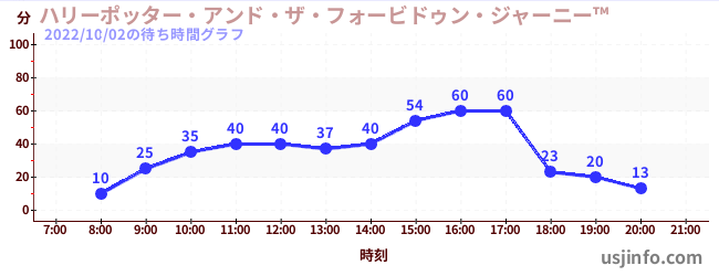 • ハリーポッター・アンド・ザ・フォービドゥン・ジャーニー™$B$N(B2022年10月02日の待ち時間