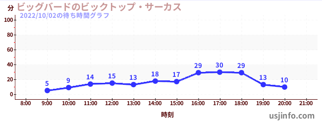 • ビッグバードのビックトップ・サーカス$B$N(B2022年10月02日の待ち時間