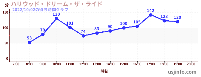 • ハリウッド・ドリーム・ザ・ライド$B$N(B2022年10月02日の待ち時間