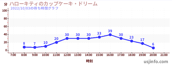 • ハローキティのカップケーキ・ドリーム$B$N(B2022年10月03日の待ち時間