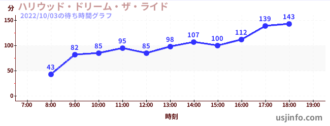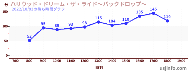 • ハリウッド・ドリーム・ザ・ライド〜バックドロップ〜$B$N(B2022年10月03日の待ち時間