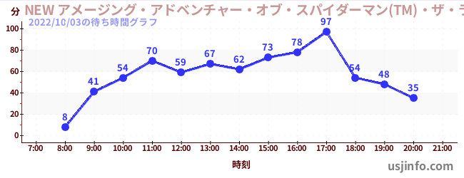 • NEW アメージング・アドベンチャー・オブ・スパイダーマン(TM)・ザ・ライド 4K3D$B$N(B2022年10月03日の待ち時間