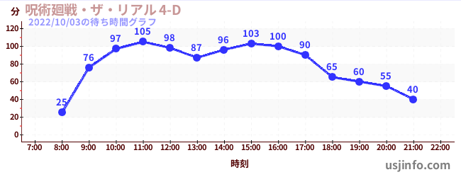 • 呪術廻戦・ザ・リアル 4-D$B$N(B2022年10月03日の待ち時間