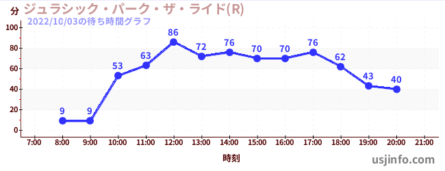 • ジュラシック・パーク・ザ・ライド(R)$B$N(B2022年10月03日の待ち時間