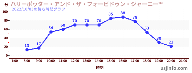 • ハリーポッター・アンド・ザ・フォービドゥン・ジャーニー™$B$N(B2022年10月03日の待ち時間