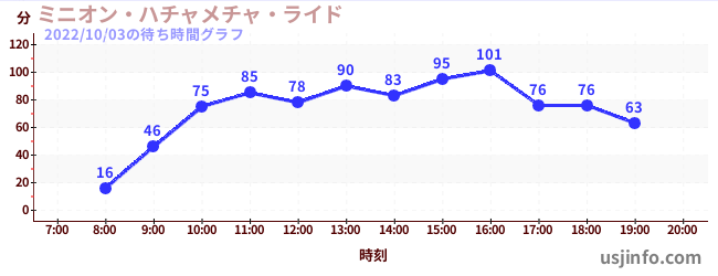 • ミニオン・ハチャメチャ・ライド$B$N(B2022年10月03日の待ち時間