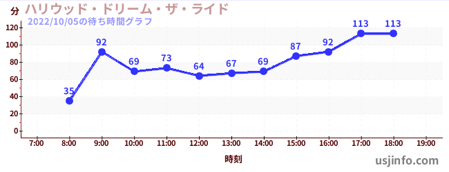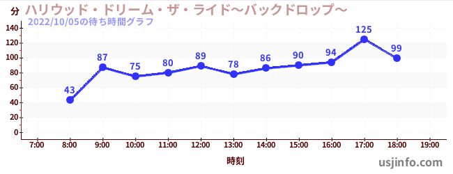• ハリウッド・ドリーム・ザ・ライド〜バックドロップ〜$B$N(B2022年10月05日の待ち時間