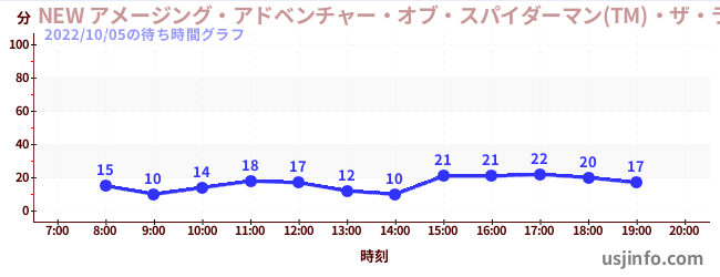 • NEW アメージング・アドベンチャー・オブ・スパイダーマン(TM)・ザ・ライド 4K3D$B$N(B2022年10月05日の待ち時間