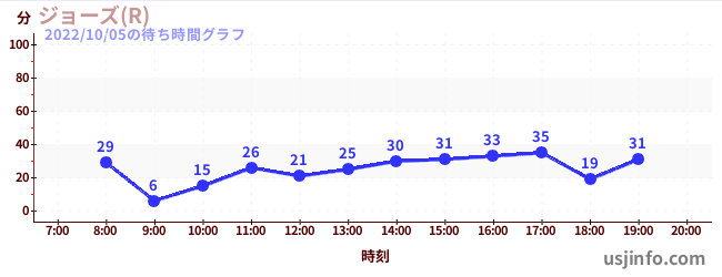 • ジョーズ(R)$B$N(B2022年10月05日の待ち時間