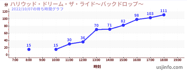 • ハリウッド・ドリーム・ザ・ライド〜バックドロップ〜$B$N(B2022年10月07日の待ち時間