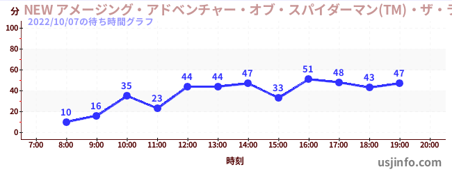 • NEW アメージング・アドベンチャー・オブ・スパイダーマン(TM)・ザ・ライド 4K3D$B$N(B2022年10月07日の待ち時間