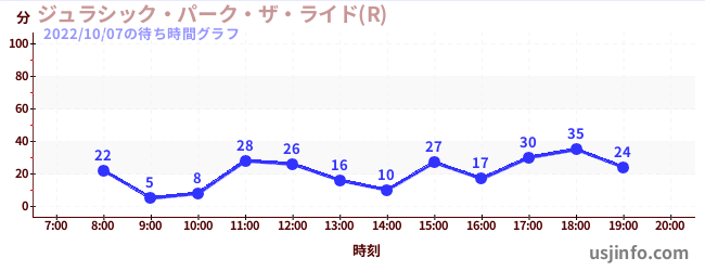 • ジュラシック・パーク・ザ・ライド(R)$B$N(B2022年10月07日の待ち時間