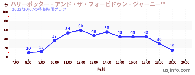 • ハリーポッター・アンド・ザ・フォービドゥン・ジャーニー™$B$N(B2022年10月07日の待ち時間
