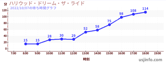 • ハリウッド・ドリーム・ザ・ライド$B$N(B2022年10月07日の待ち時間