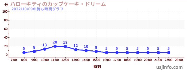 • ハローキティのカップケーキ・ドリーム$B$N(B2022年10月09日の待ち時間