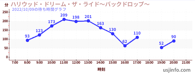 • ハリウッド・ドリーム・ザ・ライド〜バックドロップ〜$B$N(B2022年10月09日の待ち時間