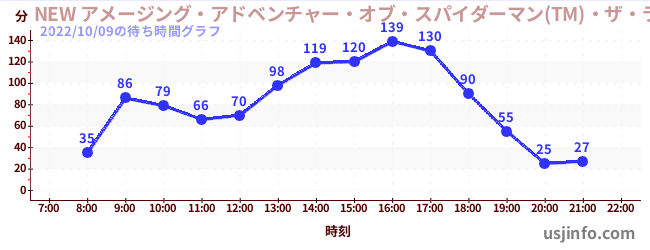 • NEW アメージング・アドベンチャー・オブ・スパイダーマン(TM)・ザ・ライド 4K3D$B$N(B2022年10月09日の待ち時間