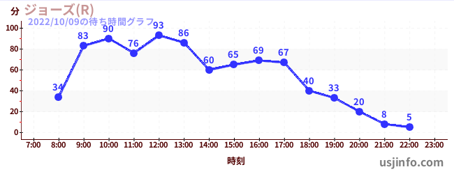 • ジョーズ(R)$B$N(B2022年10月09日の待ち時間