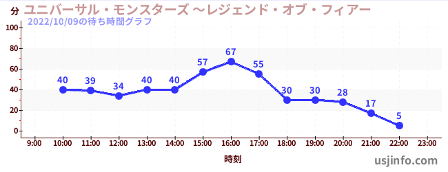 • ユニバーサル・モンスターズ ~レジェンド・オブ・フィアー$B$N(B2022年10月09日の待ち時間