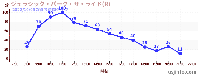 • ジュラシック・パーク・ザ・ライド(R)$B$N(B2022年10月09日の待ち時間
