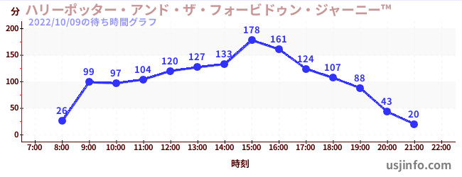 • ハリーポッター・アンド・ザ・フォービドゥン・ジャーニー™$B$N(B2022年10月09日の待ち時間