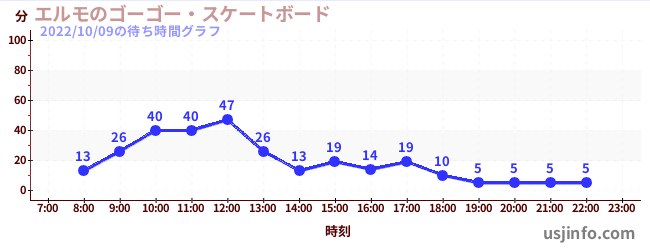 • エルモのゴーゴー・スケートボード$B$N(B2022年10月09日の待ち時間
