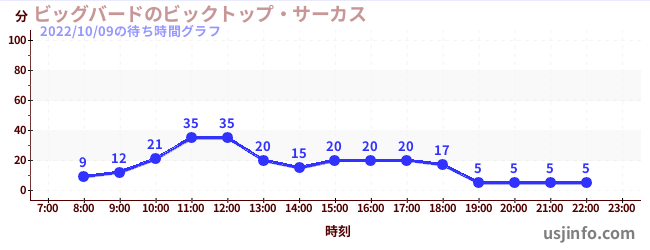• ビッグバードのビックトップ・サーカス$B$N(B2022年10月09日の待ち時間