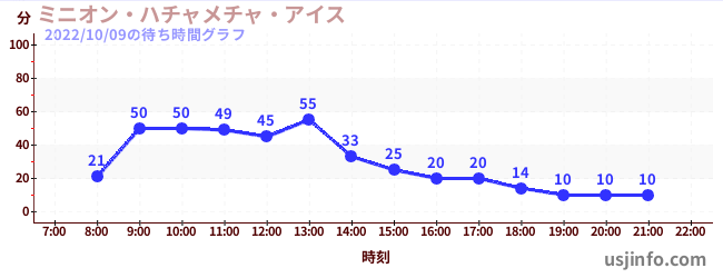 • ミニオン・ハチャメチャ・ライド$B$N(B2022年10月09日の待ち時間