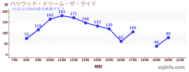 • ハリウッド・ドリーム・ザ・ライド$B$N(B2022年10月09日の待ち時間
