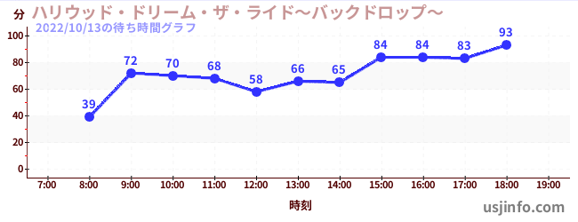 • ハリウッド・ドリーム・ザ・ライド〜バックドロップ〜$B$N(B2022年10月13日の待ち時間