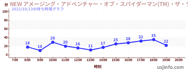 • NEW アメージング・アドベンチャー・オブ・スパイダーマン(TM)・ザ・ライド 4K3D$B$N(B2022年10月13日の待ち時間