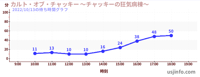 • カルト・オブ・チャッキー ~チャッキーの狂気病棟~$B$N(B2022年10月13日の待ち時間