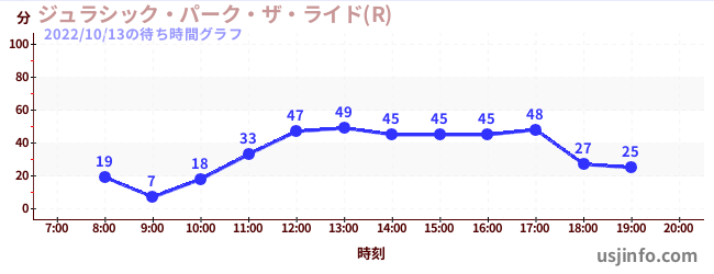 • ジュラシック・パーク・ザ・ライド(R)$B$N(B2022年10月13日の待ち時間