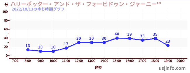 • ハリーポッター・アンド・ザ・フォービドゥン・ジャーニー™$B$N(B2022年10月13日の待ち時間