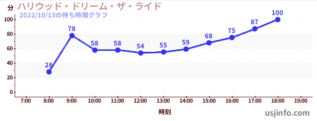 • ハリウッド・ドリーム・ザ・ライド$B$N(B2022年10月13日の待ち時間