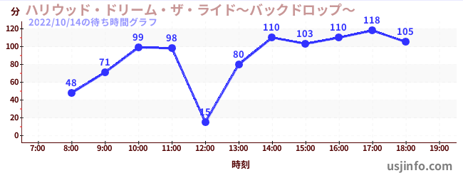 • ハリウッド・ドリーム・ザ・ライド〜バックドロップ〜$B$N(B2022年10月14日の待ち時間