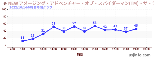 • NEW アメージング・アドベンチャー・オブ・スパイダーマン(TM)・ザ・ライド 4K3D$B$N(B2022年10月14日の待ち時間