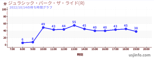 • ジュラシック・パーク・ザ・ライド(R)$B$N(B2022年10月14日の待ち時間