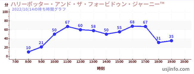 • ハリーポッター・アンド・ザ・フォービドゥン・ジャーニー™$B$N(B2022年10月14日の待ち時間