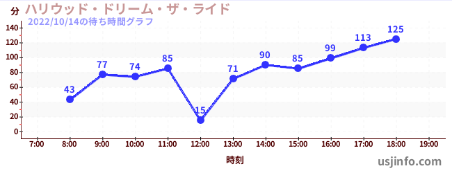 • ハリウッド・ドリーム・ザ・ライド$B$N(B2022年10月14日の待ち時間