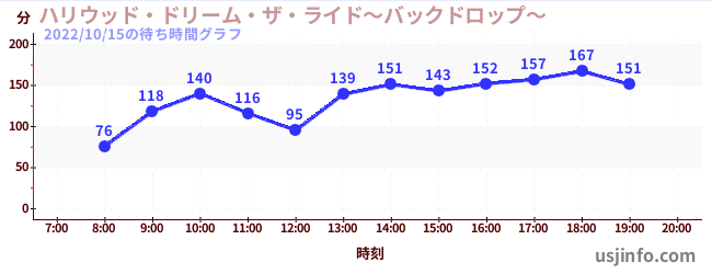• ハリウッド・ドリーム・ザ・ライド〜バックドロップ〜$B$N(B2022年10月15日の待ち時間