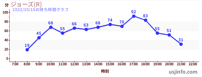 • ジョーズ(R)$B$N(B2022年10月15日の待ち時間