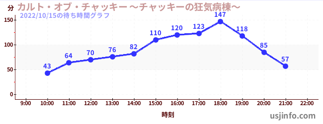 • カルト・オブ・チャッキー ~チャッキーの狂気病棟~$B$N(B2022年10月15日の待ち時間