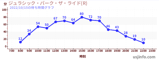 • ジュラシック・パーク・ザ・ライド(R)$B$N(B2022年10月15日の待ち時間