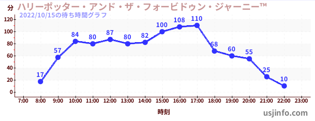• ハリーポッター・アンド・ザ・フォービドゥン・ジャーニー™$B$N(B2022年10月15日の待ち時間