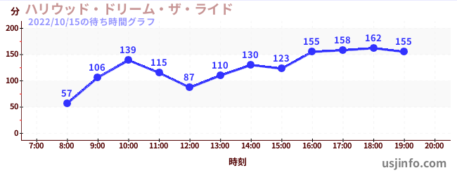 • ハリウッド・ドリーム・ザ・ライド$B$N(B2022年10月15日の待ち時間