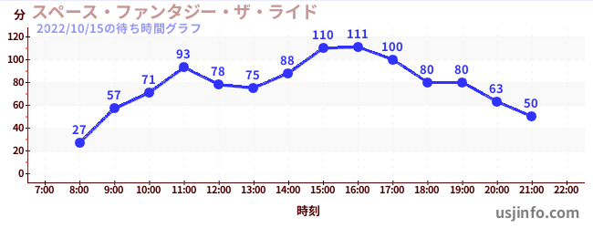 • スペース・ファンタジー・ザ・ライド$B$N(B2022年10月15日の待ち時間